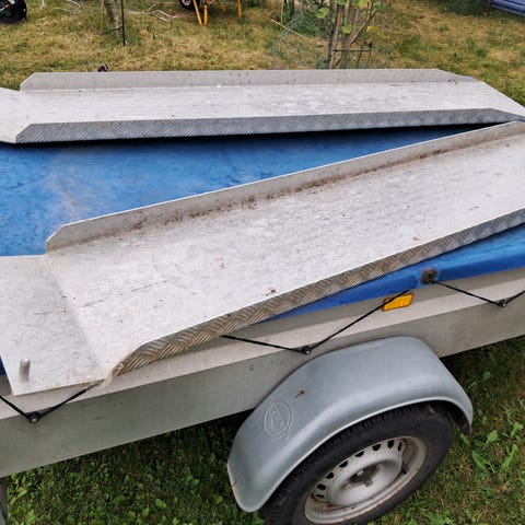 Aluminiumsplanke til brug på trailer. Planken er fremstillet i aluminium og har en skridsikker overflade. Velegnet til at lette på- og aflæsning af køretøjer eller udstyr.