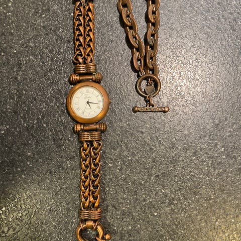 Kanin ur i lang halskæde. Det virker. Uret måler 5 cm x 3,5 cm. Kæden er 58 cm lang. Prisen er 100 kr. Kan afhentes efter aftale eller sendes for købers regning