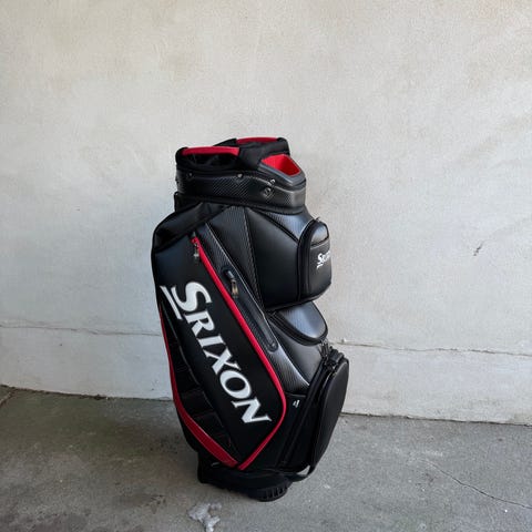 Wilson iDry vandtæt vognbag i sort og grå med flere lommer til opbevaring. Tasken har adskilte rum til golfkøller.