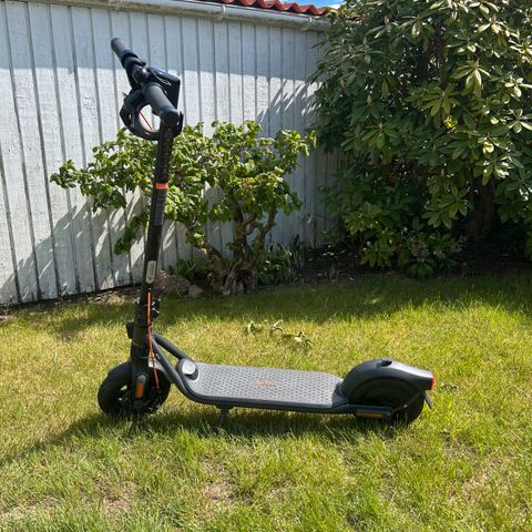 Ninebot El-løbehjul med digitalt display, blinklysfunktion og håndtag. Designet til persontransport med fokus på brugervenlighed og sikkerhed. Udstyret med skridsikker fodplade og justerbart styr. Har en lille ridse på højre håndtag