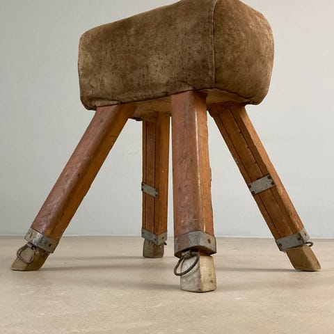 Super fed gammel gymnastikbuk med patineret, men robust læder.