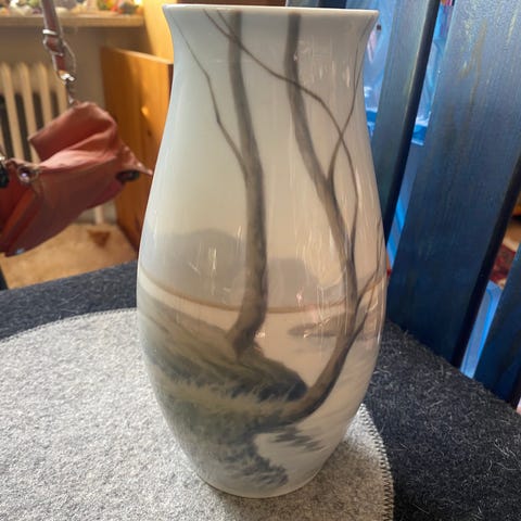 Bing & Grøndahl vase med landskabsmotiv. 12 cm høj.
