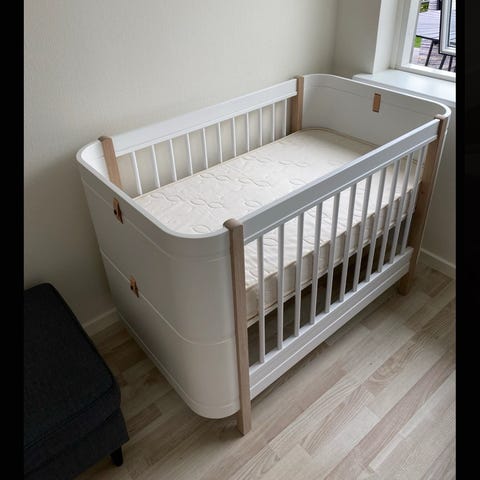 Vi sælger vores smukke Wood Mini+ baby- og juniorseng fra OLIVER FURNITURE.