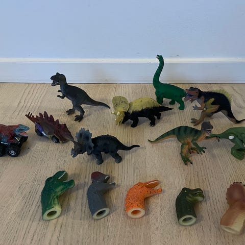 15 blandet dinosaurer figur lige til at lege med. Der er forskellige str. kan hentes alle 15 stk. for 80 kr. sendes gerne