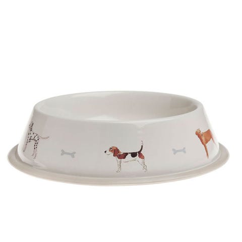 Vand- og madskål til hunden i en skønrød farve i robust keramik i top kvalitet med en emaljeret overflade, der er nem at rengøre samt modstandsdygtig overfor ridser. Skålen har et håndlavet look, og naturligvis et print af din hunds favorit ord.