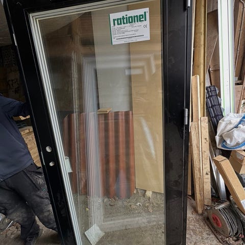 Lysegrå facade dør med tre lags glas Kun været monteret 1 uge Fejl køb