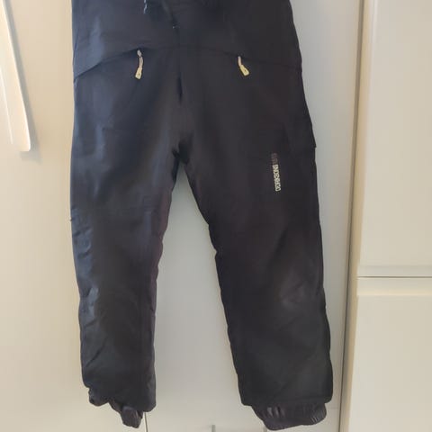Didriksons skibukser til børn i størrelse 152. Bukserne er sorte og designet til brug ved forskellige sportsaktiviteter. Materialet og designet er egnet til udendørs brug. Mærket med Storm system, og derfor 100% vandtæt