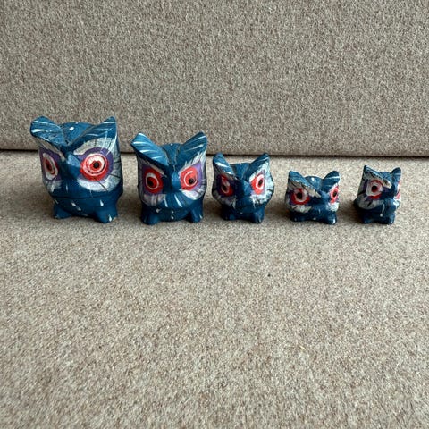 3 hyggelige og dekorative uglefigurer beklædt med "pels / fjerdragt".