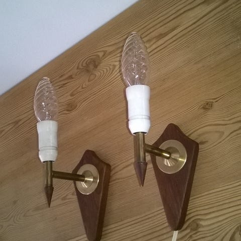 TEAKTRÆSLAMPETTER - RETRO - God stand, Fra røgfrit hjem, Sendes for købers regning. FAST SAMLET PRIS FOR BEGGE TO.