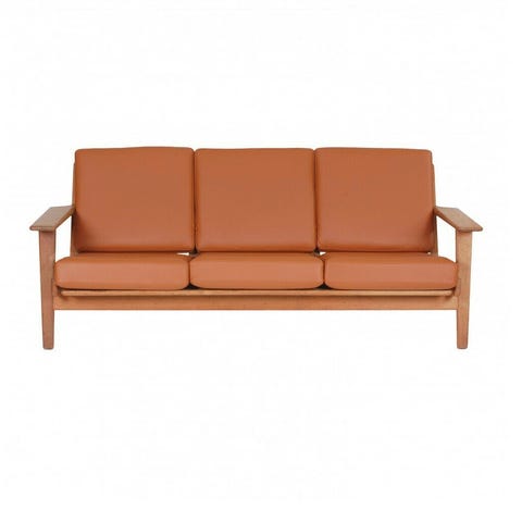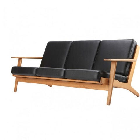 Hans J Wegner sofa med sort læder og egetræ