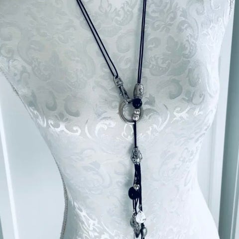 Kæden er ca 40-47 cm lang og vedhæng er ca. 8 cm lang