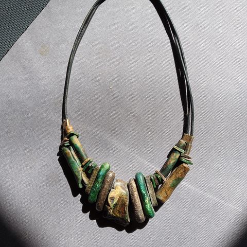 Sølv Hals smykke med oxyderet kæde og lille farvet sten i vedhæng og kæden er 45 cm lang. Nypris 350 kr Kan sendes for 47 kr