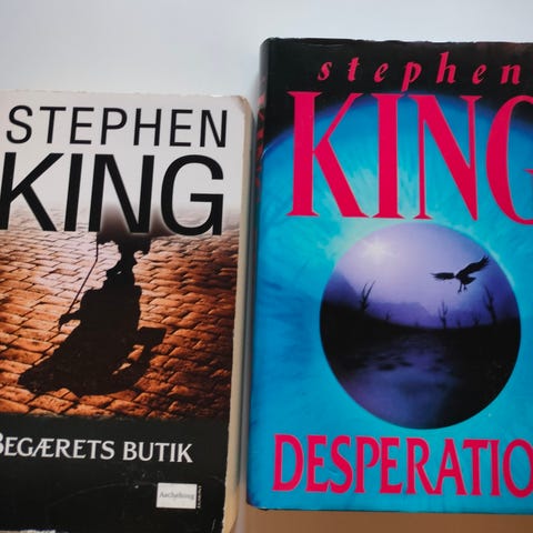 Stephen King Desperation bog med blå og rød forside. Roman af Stephen King.