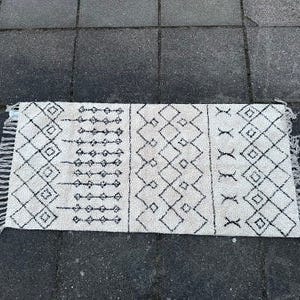 Uld tæppe/løber i rosa på den ene side og gul på den anden side