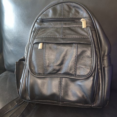 Sælger denne smarte læder rygsæk fra Japan i brun læder. Den er aldrig blevet brugt. Den har en smart lukkemekanisme i bunden og kan også lynes op i toppen. Læderstropperne kan justeres.
