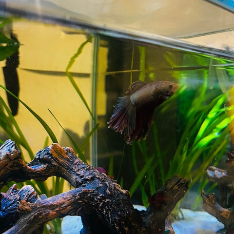 Kampfisk hun, et halvt års tid gammel.