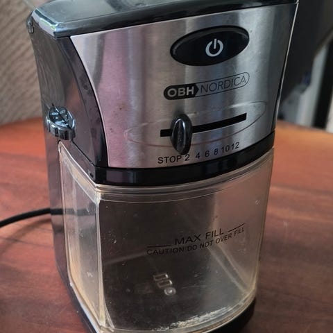 OBH Nordica Coffee Mill kaffekværn i sort farve. Designet til kværning af kaffe til hjemmebrug.