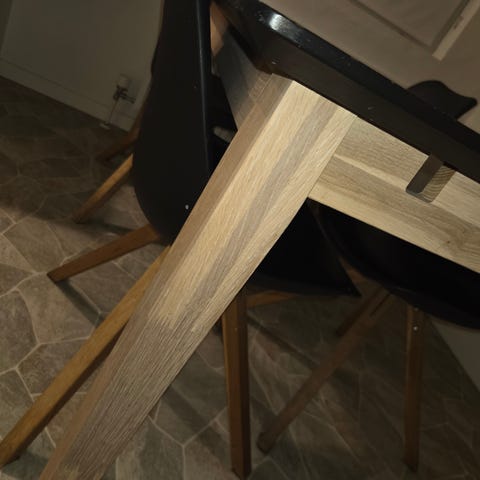 Fra røgfrit hjem, bordet måler 90•160cm, plus 2 tillæg plader som opbevares under bordpladen når de ikke bruges, samt 4 stole. Afhentes i 8751 Gedved