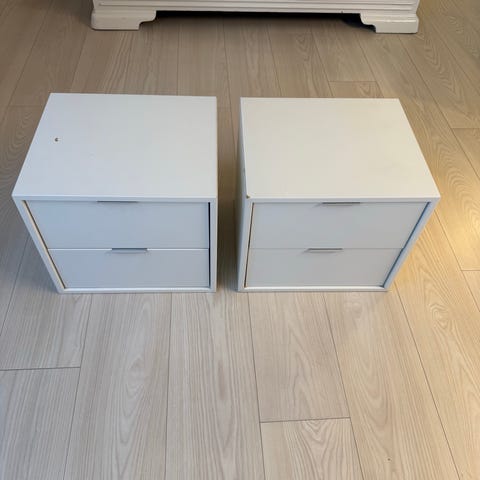 fine hvide senge borde med kurv og skuffe