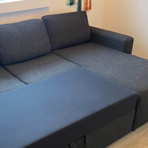 Sovesofa/briks med opbevaring og sort madras