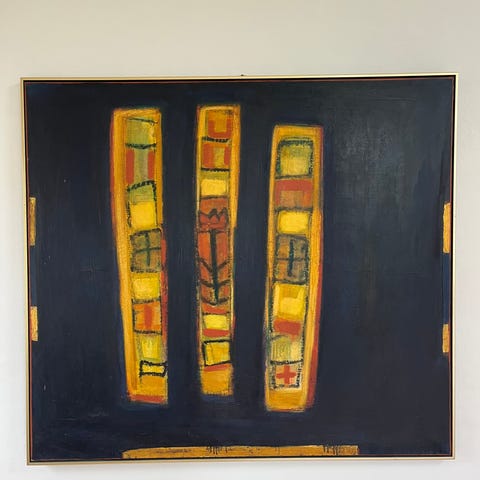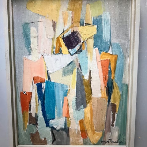 Hans Due Maleri Blå og Rød Abstrakt Komposition