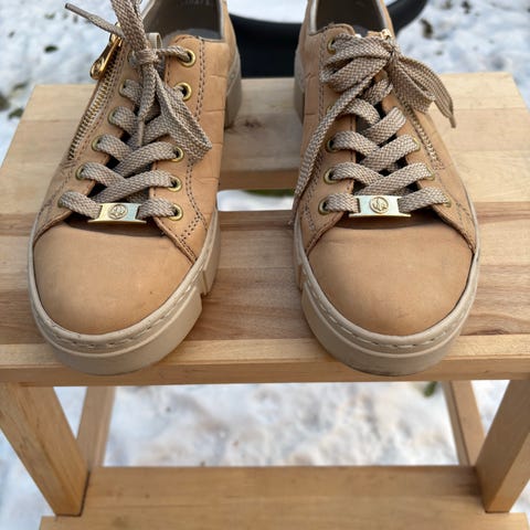 Rieker Sneakers i størrelse 38 med blå farve. Skoene har snørebånd og lynlåsdetaljer på siden. Materialet er blødt og velegnet til hverdag og fritid.