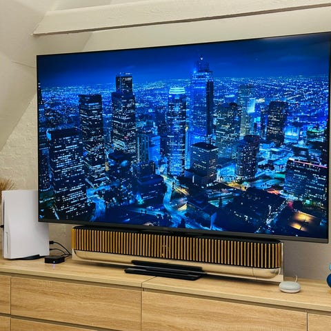 Jeg sælger min Beosound Theatre 65” fra Bang & Olufsen i den eksklusive farve Black Anthracite med Smoked Oak Wood cover.