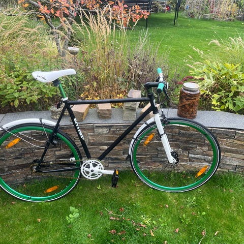 Sold with hand pump, chain cleaning brush, helmet and lock.
