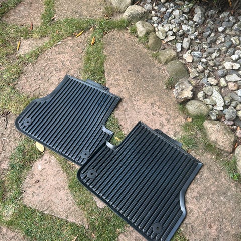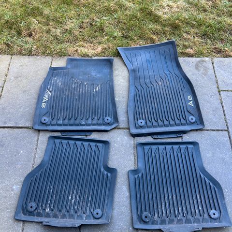 Audi A6 Avant (C7 - modelår 2011-2018) sæt af gummimåtter, består af for- og bagmåtter, samt bagagerumsbakke. Måtterne er originale Audi, og i god stand.