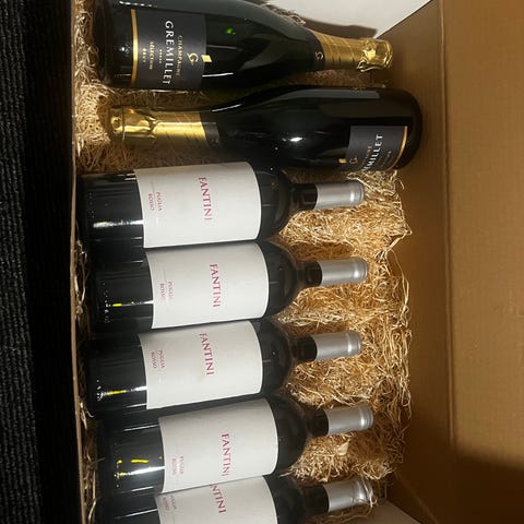 Fremragende vine, som jeg desværre ikke drikker, måske ville nogen have lyst til det. Veuve Ambal, La Escapada 75dk, Champagne 150 dk. Pris forhandles.