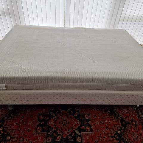 Rigtig god seng, hvor sengestel og madras er inde i senge betrækket, så det kun er lagenet på topmadrassen der skal skiftes 👍👍