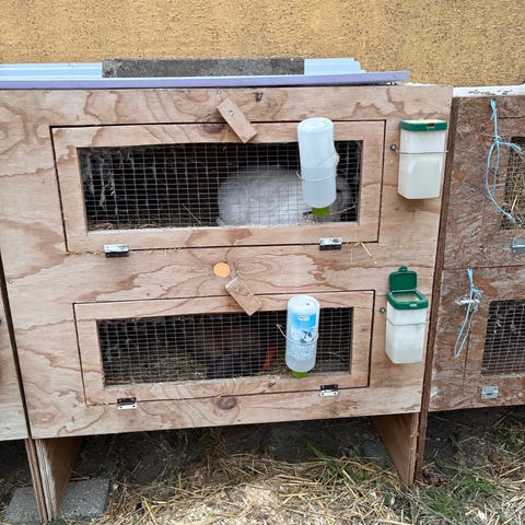 Der er både indgange i siden samt i låget. Giver mulighed for at flytte kaninen rundt i haven. Man kan sætte sit eget bur i forlængelse af buret således at kaninen kan løbe ud på græs selv.