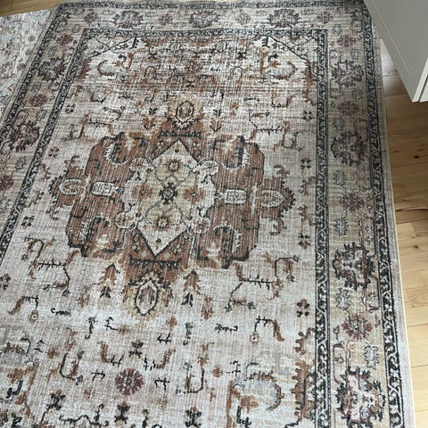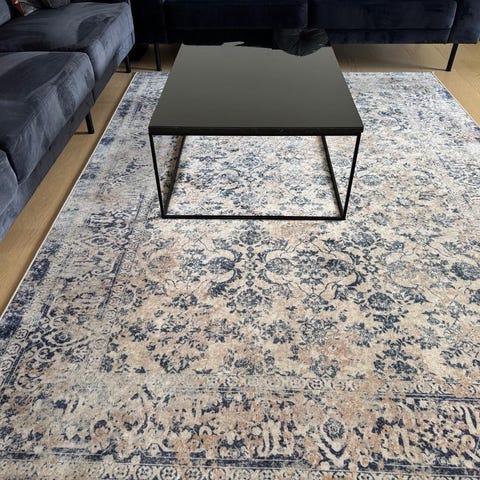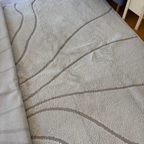 Tæppet er aldrig brugt da det ikke fungerede i størrelsen, det har derfor ingen slid eller brugsspor