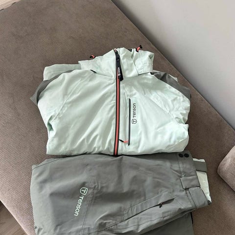 Tenson Afrismo damejakke og bukser i grøn/turkis farve.