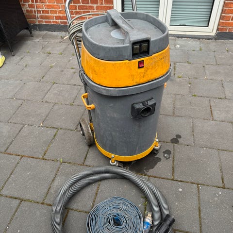 Vandstøvsuger med pumpe som tømmer beholderen. Virker som den skal.