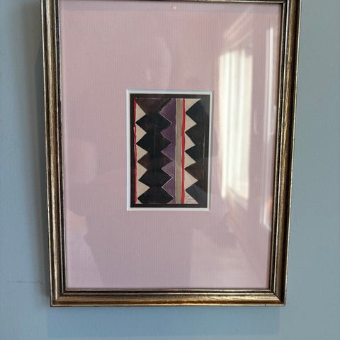 Fineste lille sonja Delaunay tryk i skønne farver. Sat i smuk sølv træramme i lyserød passepartout