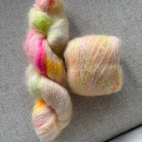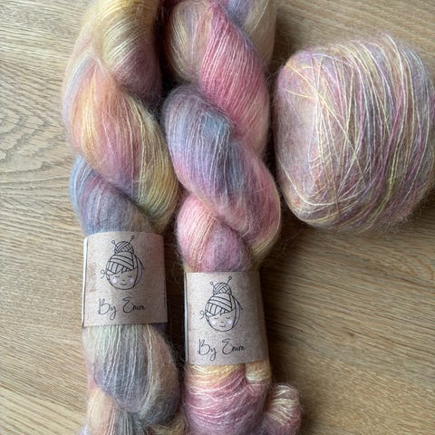 Håndfarvet silk mohair fra Loops of liberty i lilla nuancer