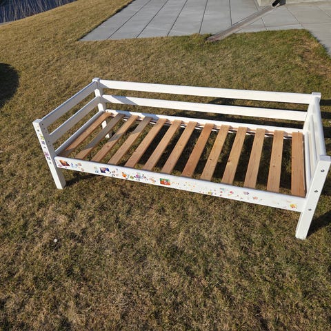 Juniorseng til børn. Sengen har en enkel ramme og inkluderer en god kvalitetsmadras fra BabyDan.