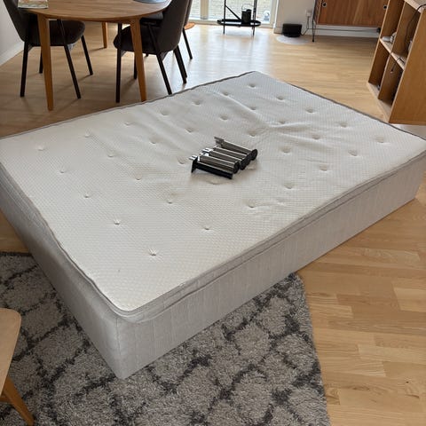 Meget god boxmadras fra Ikea! Ikke brugt særligt meget og der medfølger ben!