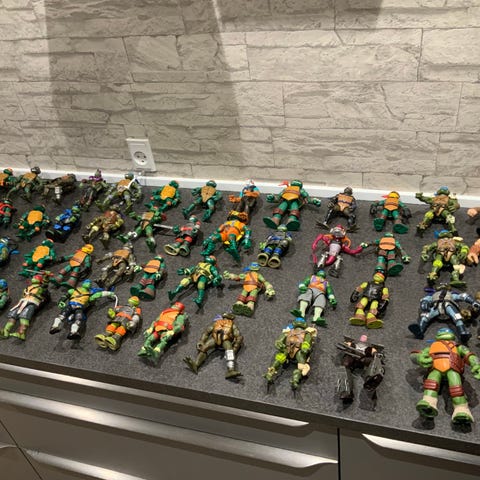 Ninja Turtles actionfigurer med forskellige karakterer og tilbehør. Inkluderer figurer med bevægelige led og en Ninja Turtle Transformer.