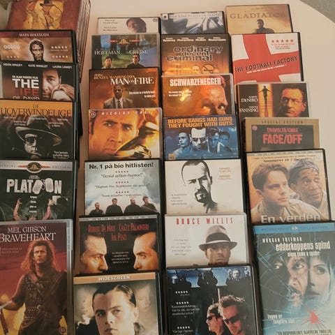 OBS: Filmene har stået i min reol nær et vindue så en del covers er mindre pæne pga indstrålingen fra solen, men selve DVD'erne virker som sagt som de skal.