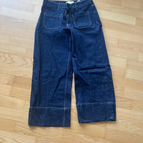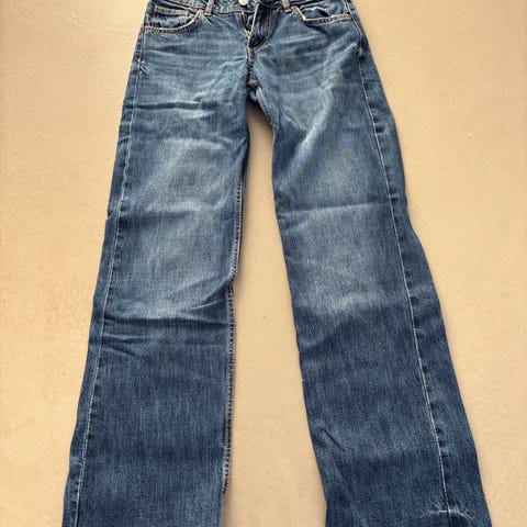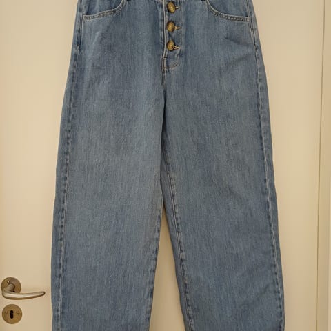 Zara blå denim bukser til kvinder i størrelse 34 med taljestørrelse W25. Bukserne er fremstillet i denim materiale.