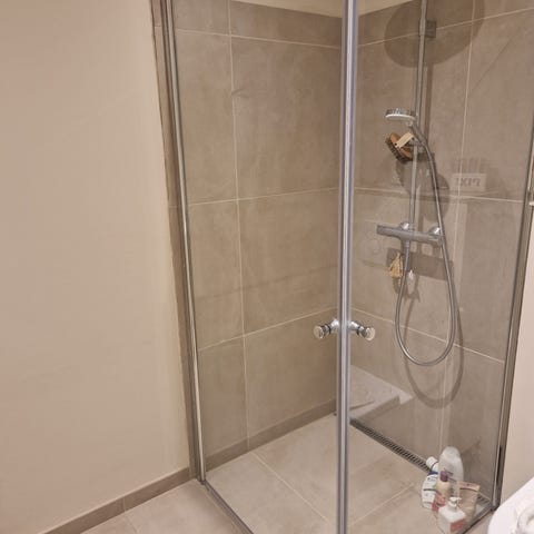 Bruseniche svingdør fra SPA Kompagniet (nypris kr. 2.095). 8 mm hærdet frost glas. Ingen fejl, men kræver lige en gang Rodalon.