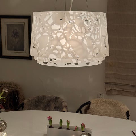 Louis Poulsen Collage 450 Pendel er en lampe designet af Louise Campbell. Pendlen har et unikt, dekorativt mønster og er fremstillet i hvidt materiale. Den er velegnet til brug i forskellige rum, hvor et stilfuldt og funktionelt lys er ønsket.