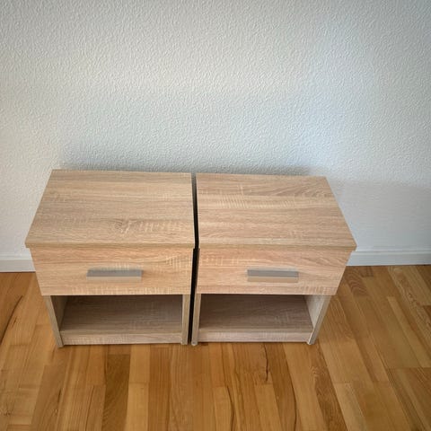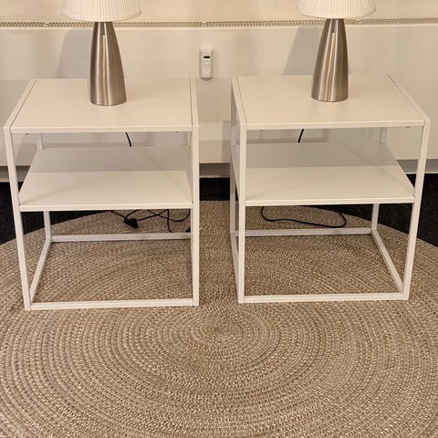 2 stk. Væghængt natborde i hvid. Pæn stand, kun hængt i My Home udstilling, vi har aldrig brugt dem. Vores pris 825,- kr. Sælges samlet.