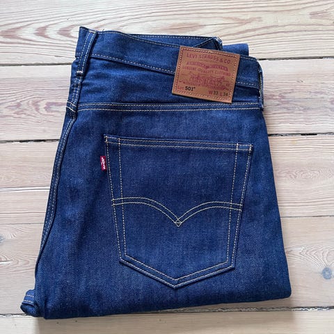 De jeans, du ser på billedet, er et par sjældne Levi's Engineered Jeans 10th Anniversary Edition, som oprindeligt blev udgivet i 2009. De er ikke brugt meget og er som nye