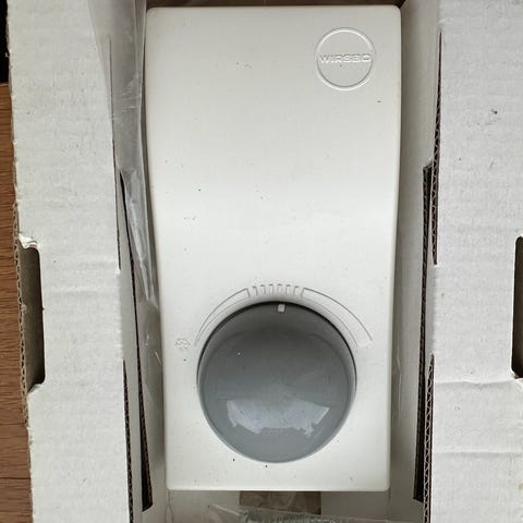 TP-98TX trådløs termostat i hvid farve. Passer til Wirsbo gulvvarme styring. Enheden viser temperatur og har knapper til justering. Drives af AAA 1,5V batteri. Prisen er pr. stk. Rabat ved køb af alle 4.