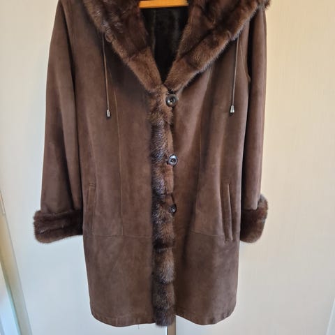 Den er lavet af 100% lam, både indside og udside. Super god og varm. Den er meget velholdt, og fremstår som ny.