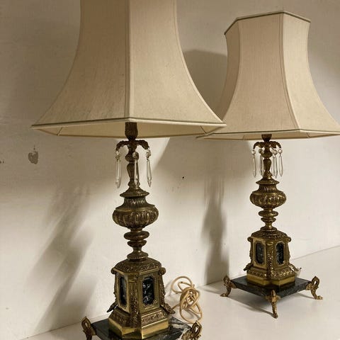5-armet messinglampe med marmorfod.
