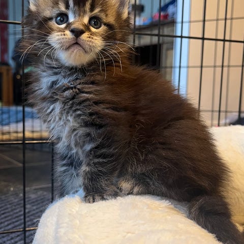 Vores smukke lille Maine Coon dreng i farven hvid (W64) er nu klar til at finde sin kommende familie!